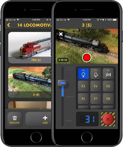 Make videos and take pictures while controlling your locos • Easy to use locomotive list • Elegant interface with easy access to all main functions • Compatible with any DCC system with a Wi-Fi server • Use with JMRI: just set the Wi-Fi server available on Decoder Pro